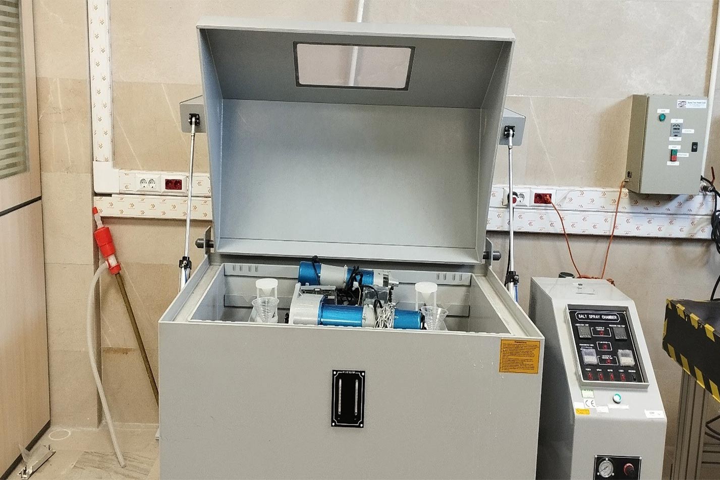 A Salt mist spray test is a standardized accelerated corrosion test used to assess the resistance of materials—especially metals and their coatings—to a hostile, salt‐laden atmosphere. In this test, a specimen is placed inside a closed chamber and subjected to a fine mist of a salt solution (often ~5% sodium chloride) under controlled temperature 35°C and humidity conditions. The goal is to compare corrosion onset (rust, oxide formation, coating degradation) across different materials or surface treatments and quality control of protective coatings.